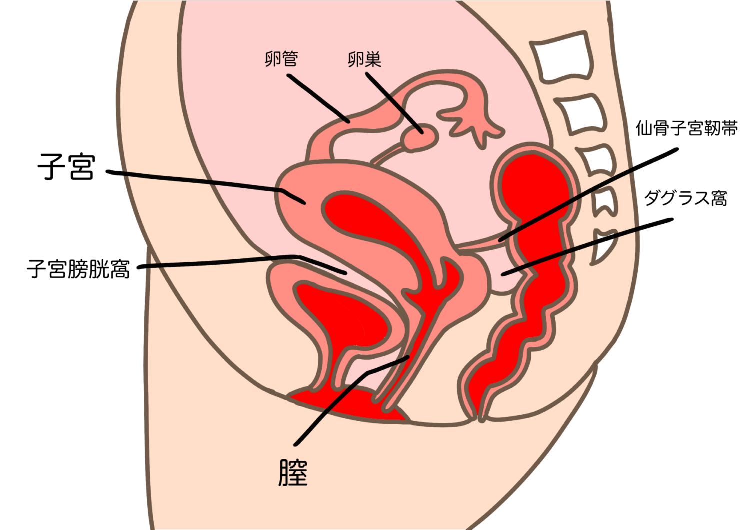 例えば子宮と直腸の間の空間のダグラス窩